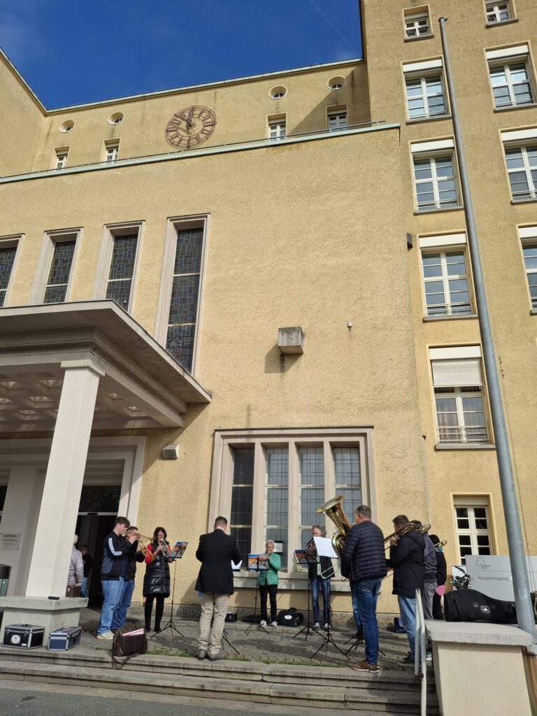 Direkt im Anschluss an den Gottesdienst brechen wir auf zu unserem Herbsteinsatz im Krankenhaus Fürth, wo wir bei herrlichem Sonnenschein unser zweites Ständchen in diesem Jahr für die Genesenden und Kranken bringen.