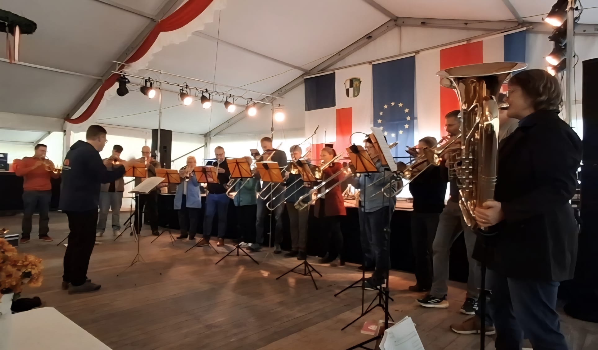 Das Wochenende um den Tag der Deutschen Einheit nutzte unsere Gemeinde, um mit unseren Partnergemeinden aus Frankreich, Polen und Kroatien ein buntes Jubiläumsfest zu feiern. Aus jeder Partnergemeinde kamen die Gäste und brachten eindrückliche Musik und Tanz mit. Verschiedenste Gruppierungen traten am Sonntag beim Europäischen Markt im Festzelt auf der Kuhrswiese auf. Wir waren ebenso mit eingeladen und steuerten Musik aus unserem aktuellen Programm bei.